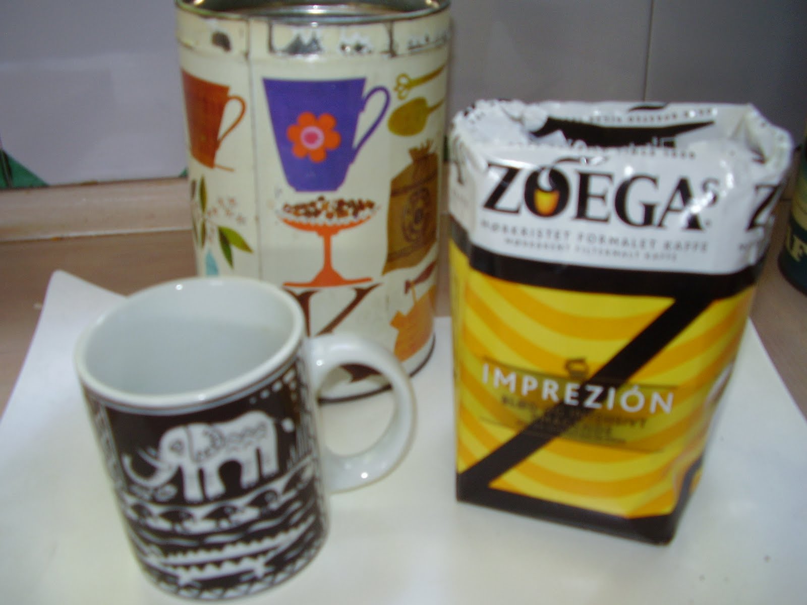 og dåsen med den røde ring om kaffe er den vi bruger til hverdagskaffen- den dåse har jeg fundet på en hylde i kælderen hos min mor for 20 år siden- og hvor den kom fra inden da ved jeg ikke- måske min farmor- det skal jeg huske at spørge om..